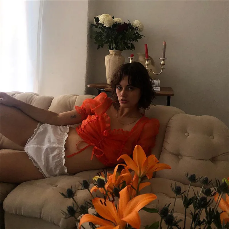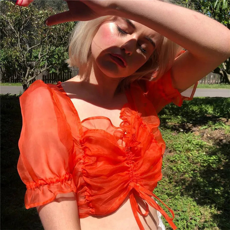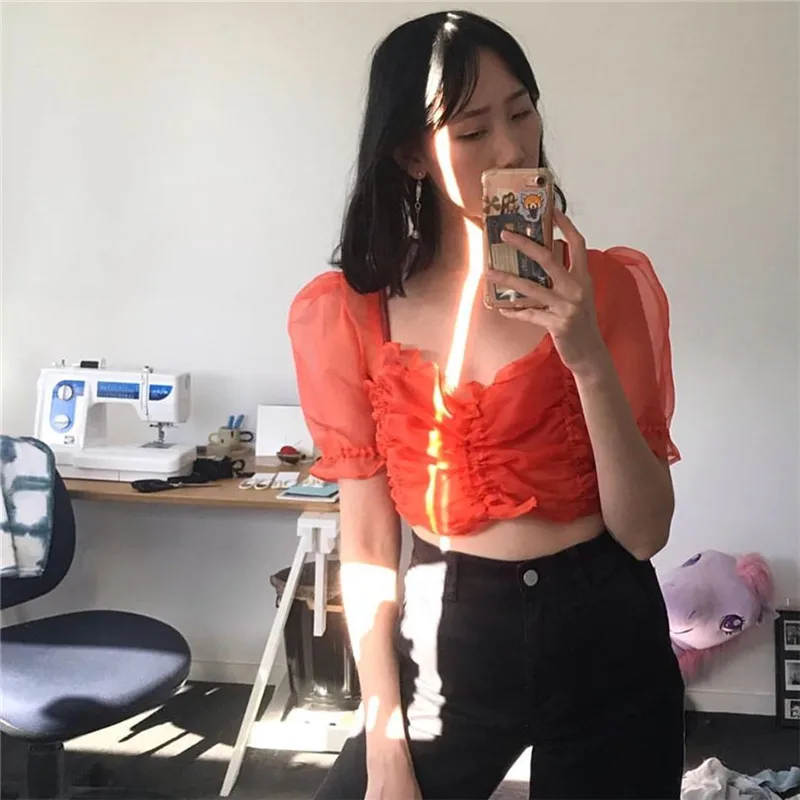 New Fashion Women Tops Fold Clothes Short Style For Holiday Dance Costumes Stage Wear Red Gauze Rav