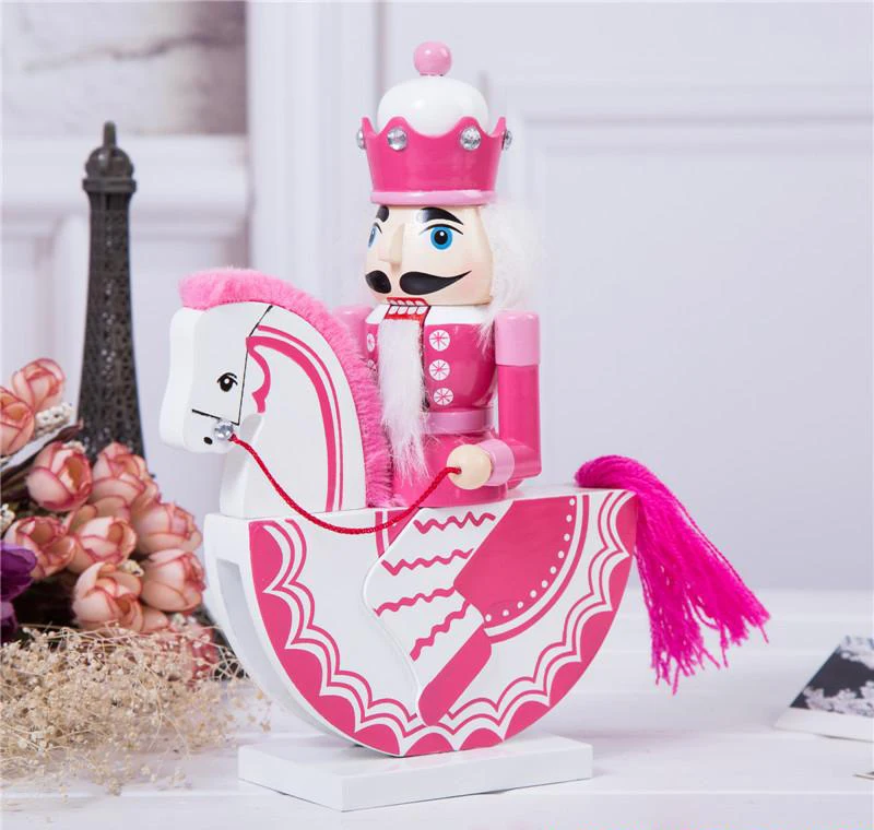 TOP New 25Cm High Christmas Holiday Nutcracker Wood Horse Princess Prince Vintage German Wooden Table W